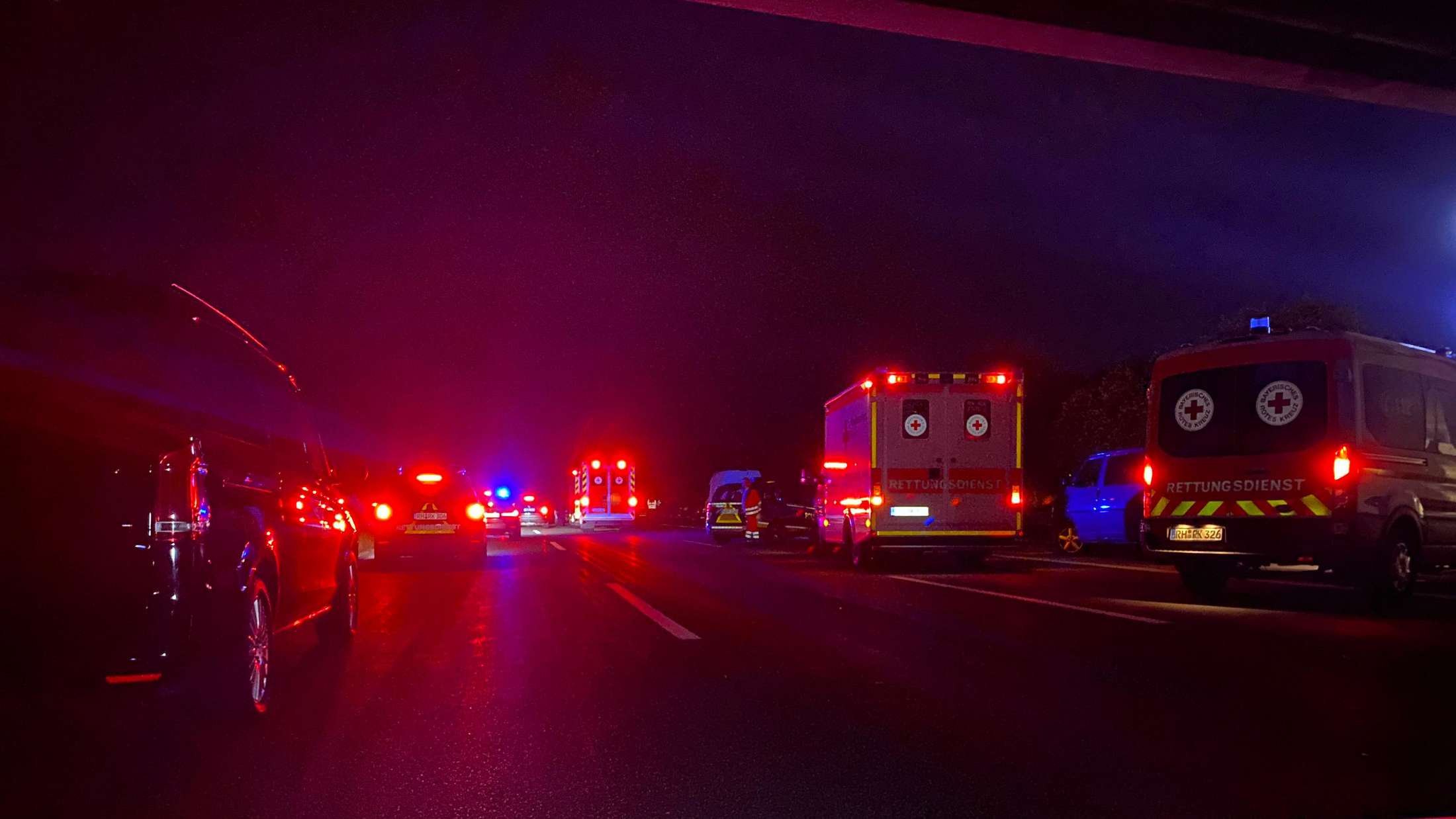 Geiselnahme in Reisebus Festnahme auf der A9 21092021 2204 Uhr t-online dpa Polizisten mit ihren Fahrzeugen auf der Autobahn 9 bei Hilpoltstein. Ein mutmaßlich bewaffneter Mann verschanzt sich in Bayern auf der Autobahn 9 in einem Reisebus.