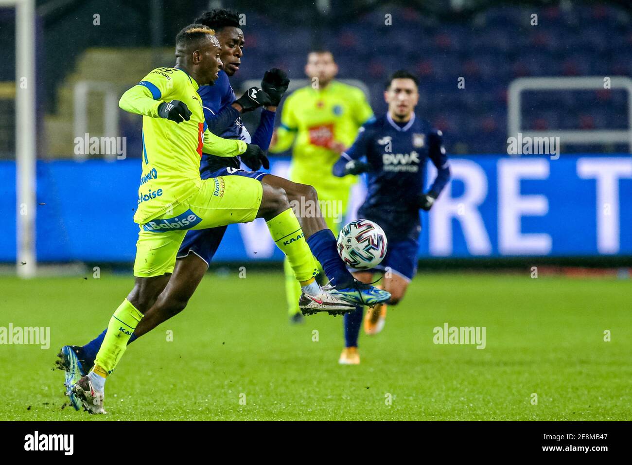 Brussels Belgium January 31 Anderson Niangbo Of Kaa Gent Albert Sambi Lokonga Of Rsc Anderlecht During The Pro League Match Between Rsc Anderlecht And Kaa Gent At Lotto Park On January