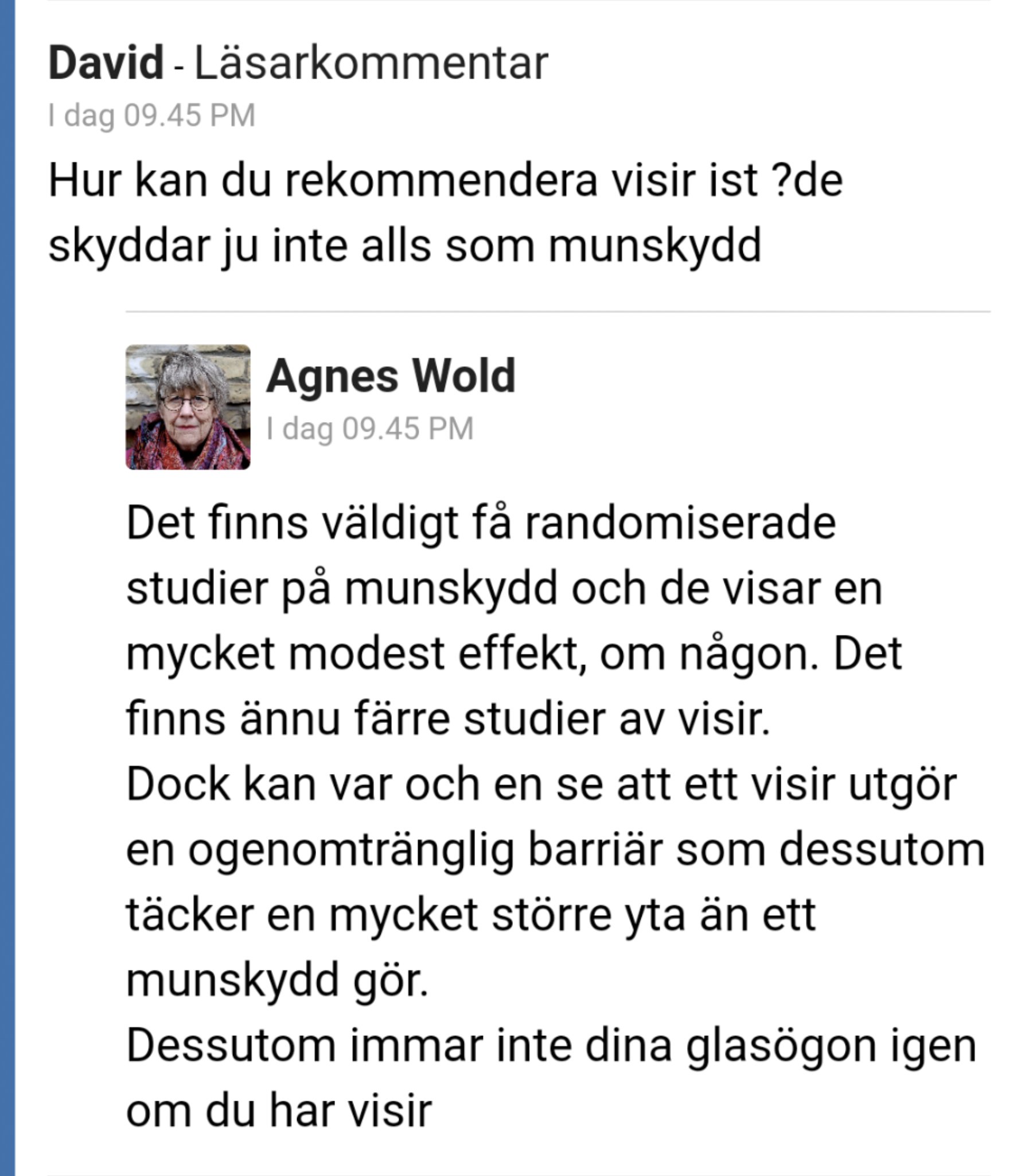 Agnes Wold Ar Twitter Visir Ar Det Som Ar Standard For Att Undvika Droppsmitta Om Du Har Munskydd Sa Ska Det Kompletteras Med Skyddsglasogon Ganska Opraktiskt Https T Co Pw4ctmg9kg